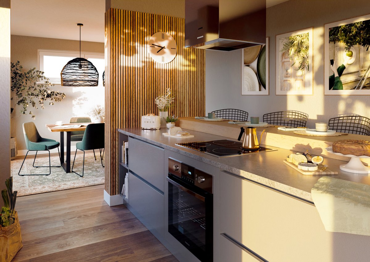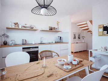 In der Küche haben Sie viel Platz für gemeinsame Kochabende und das Familienfrühstück unter der Woche.
